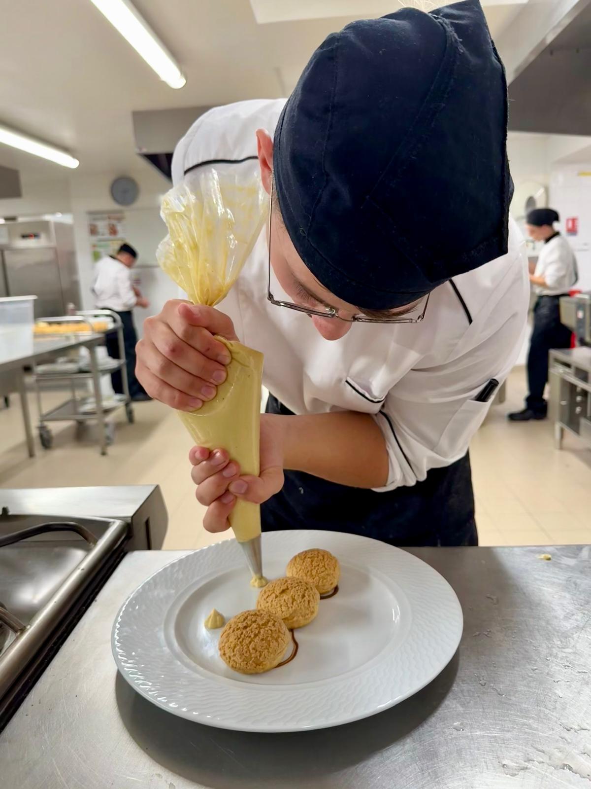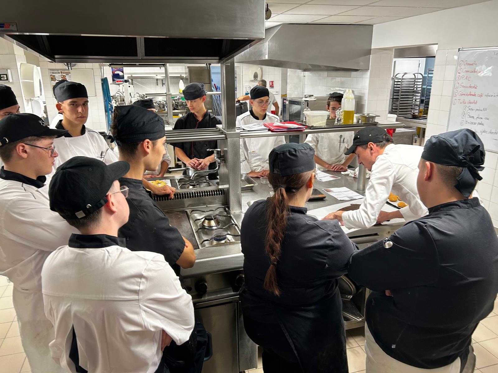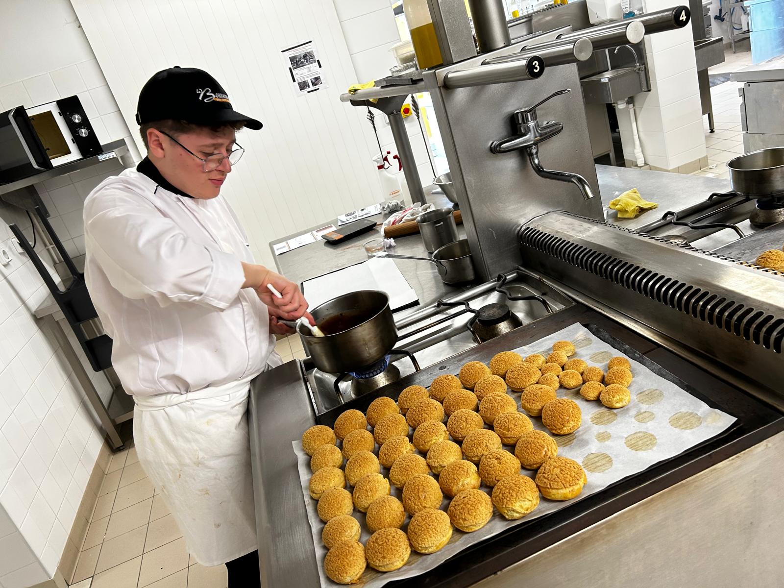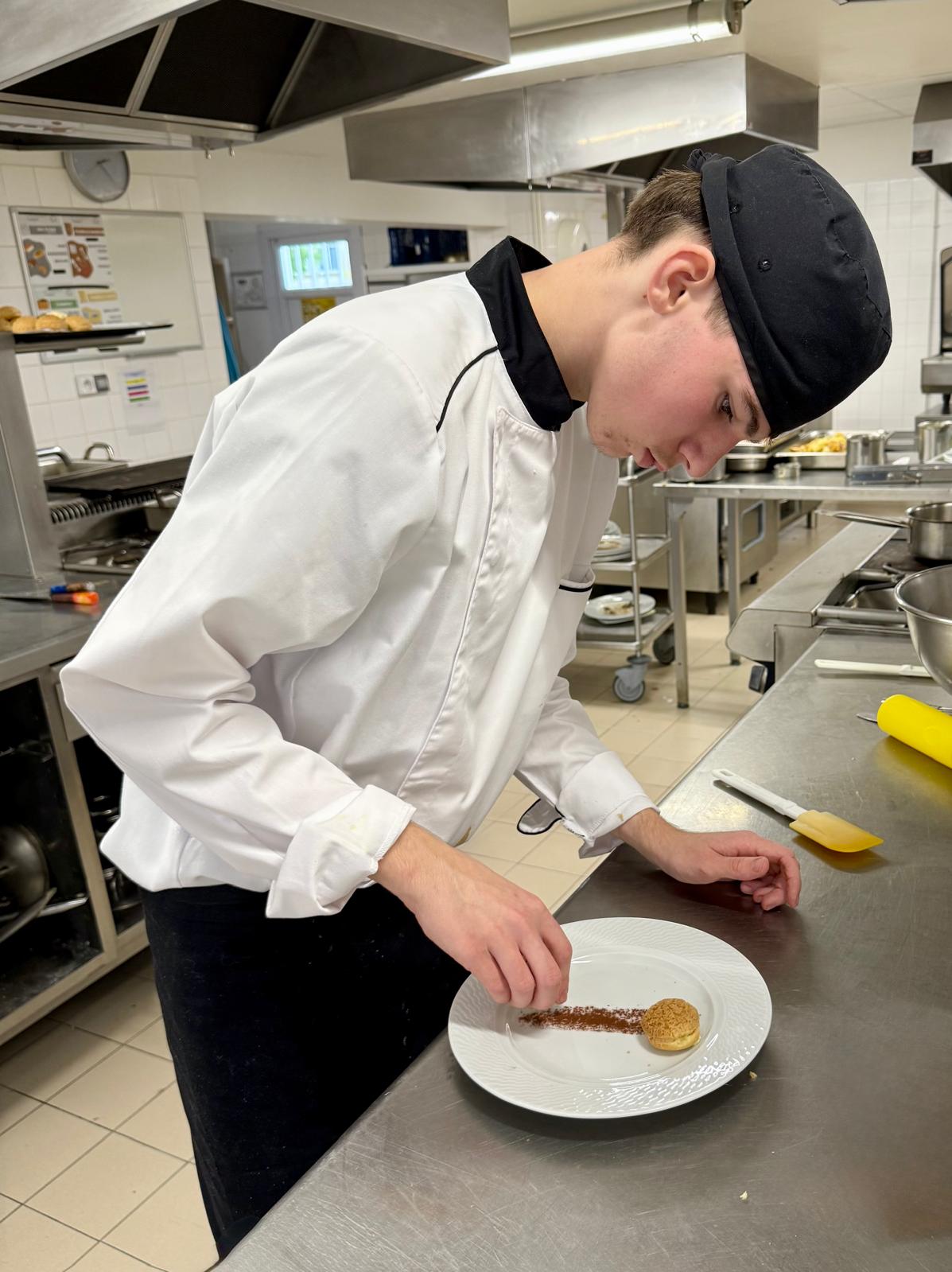 Sous la houlette de M. Godet (formateur en pâtisserie), ils ont préparé la mise en place lundi après-midi pour créer une assiette autour d’une déclinaison de choux café et de sa sauce chocolat …