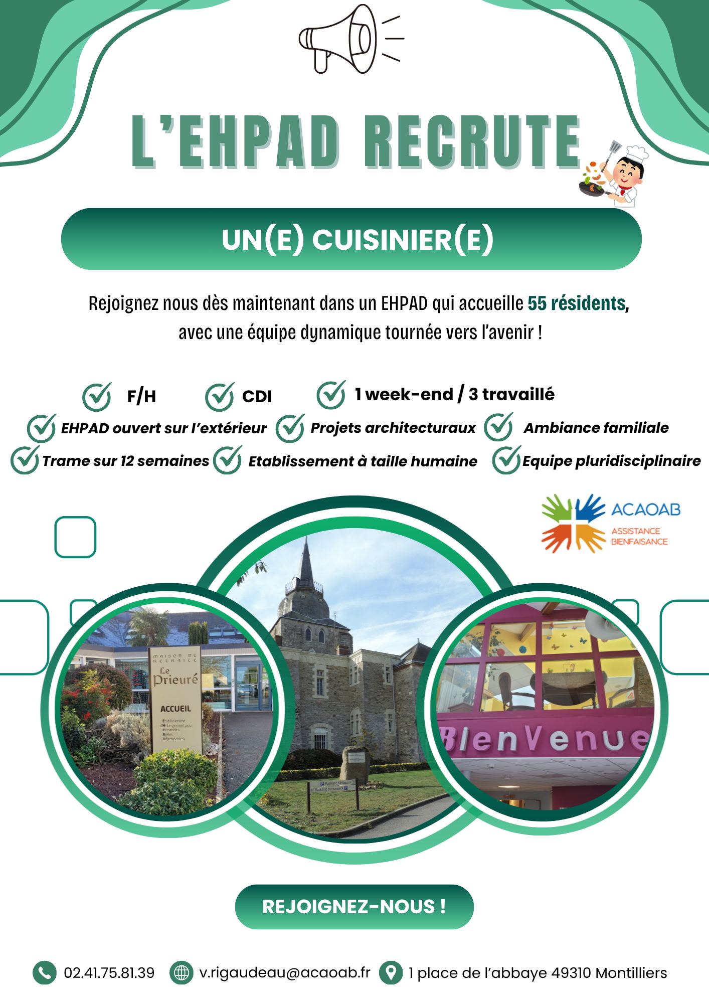 L’EHPAD Le Prieuré à Montilliers (49) recherche :