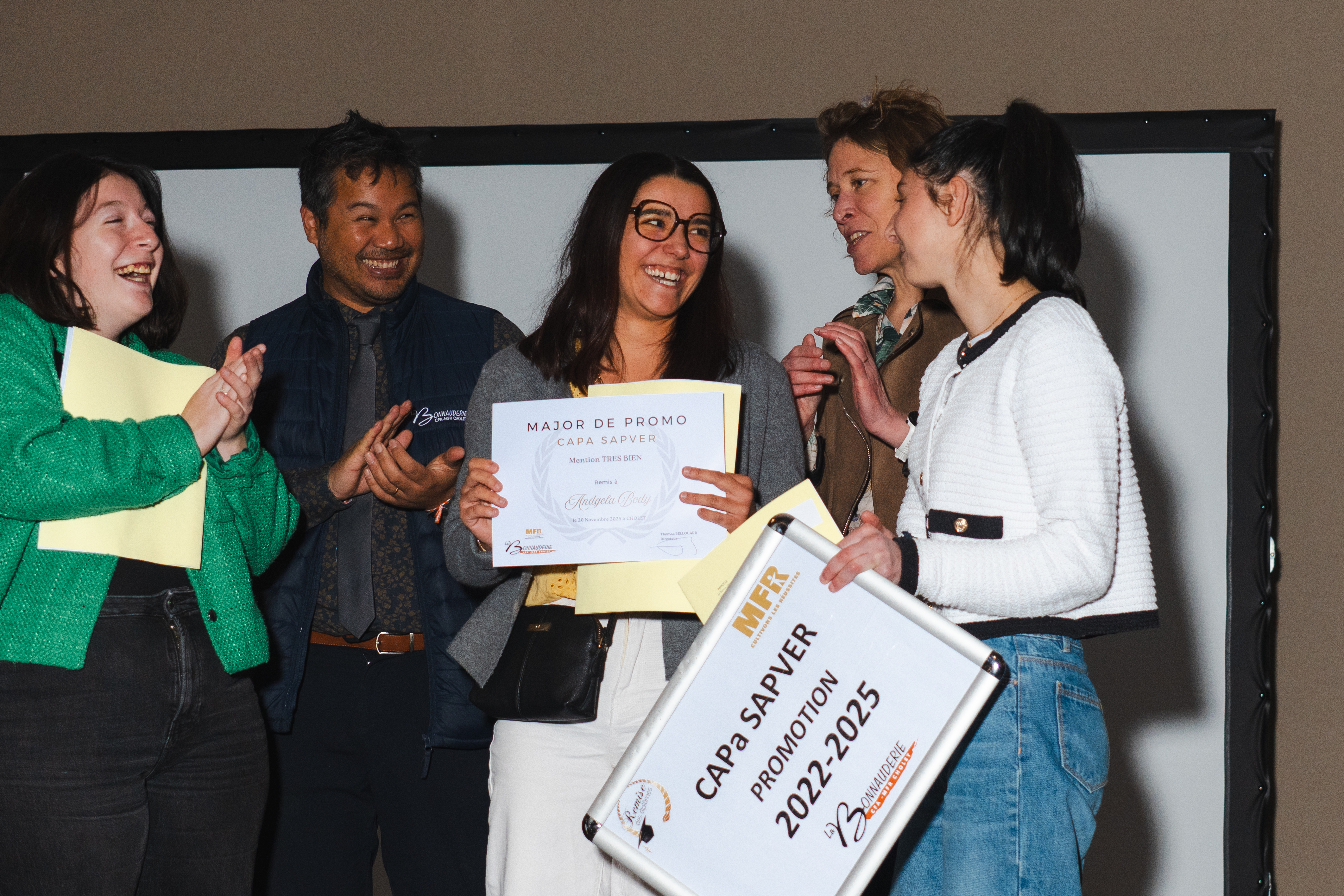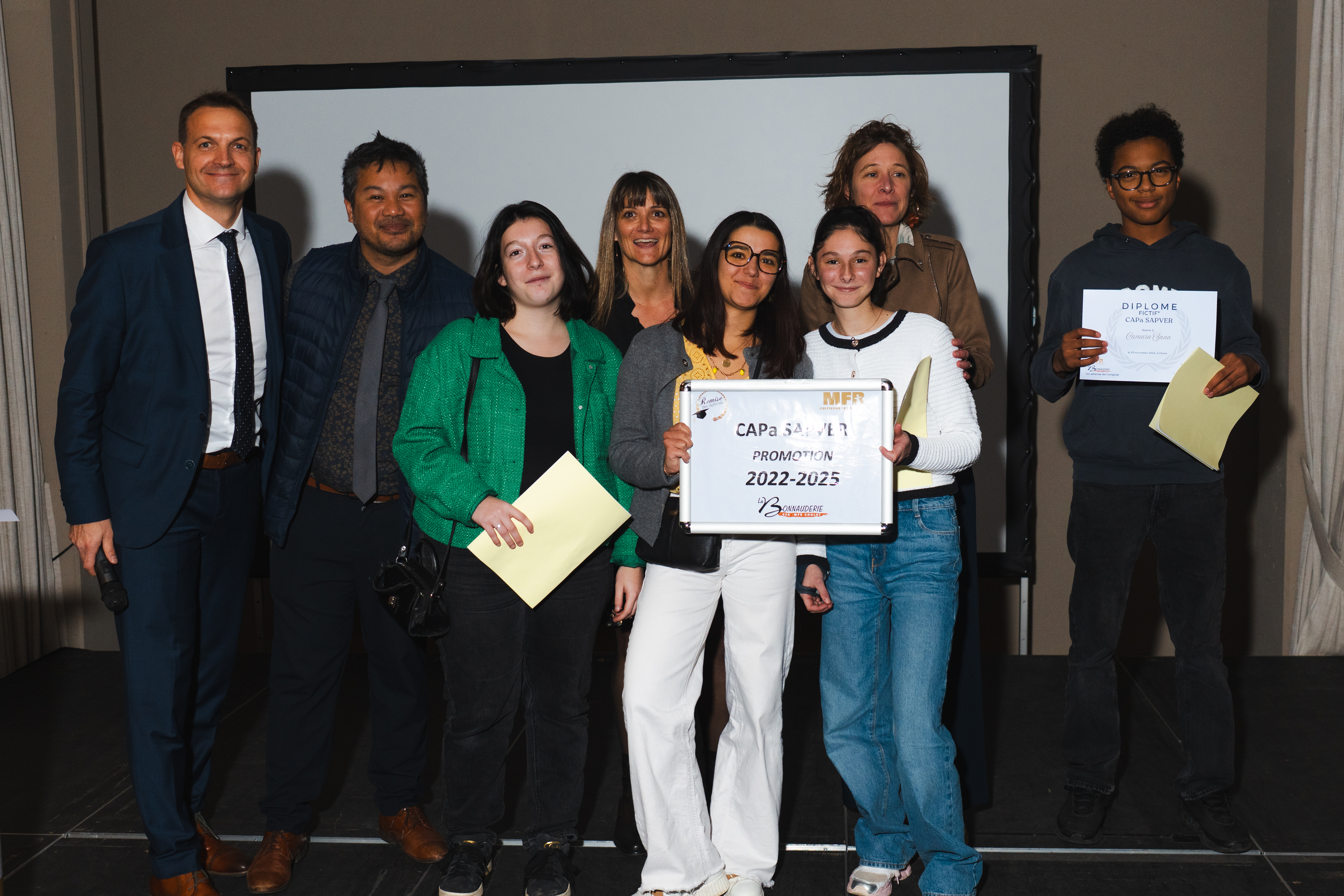 Les jeunes, les familles, le conseil d’administration et l’équipe de la MFR partagent ensemble un temps fort qui marque la fin d’un parcours et le début de nouvelles réussites.